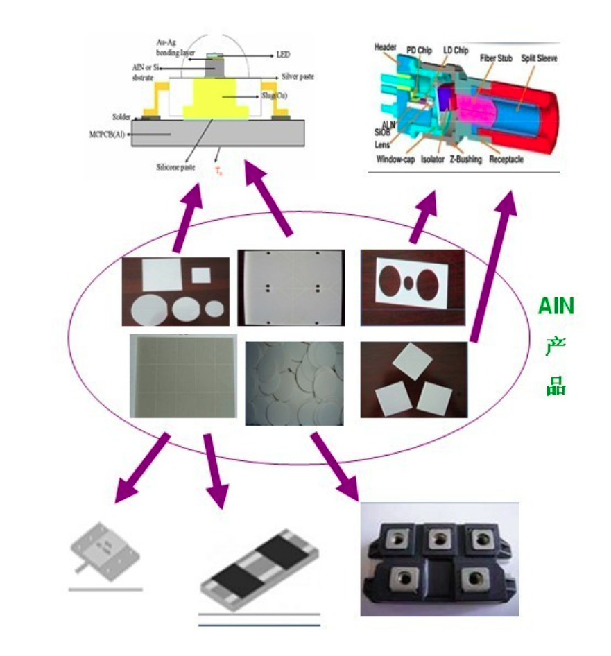福建華清生產的氮化鋁陶瓷基板可以在通信器件、LED封裝、電力電子器件、半導體制冷器件、大功率集成電路、新能源汽車等領域使用。